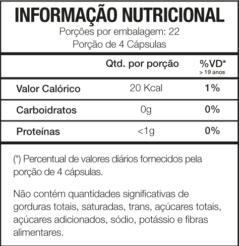 Suplemento alimentar indicado para maiores de 19 anos. Consulte um profissional de saúde antes de iniciar o uso.